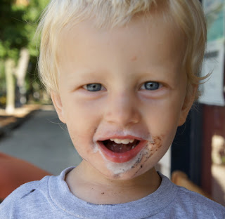 Eli dug into the birthday ice cream! Both hands and full face!